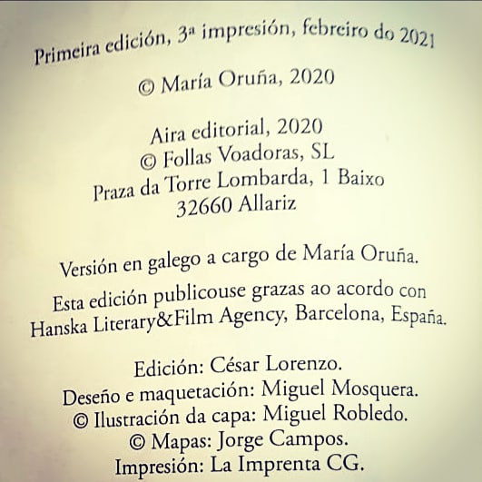 Anunciamos la TERCERA IMPRESIÓN de la versión en gallego de «El bosque de los cuatro vientos». La acogida de «O souto dos catro ventos» ha resultado excepcional entre los lectores gallegos, a pesar de que no ha podido realizarse ni una sola presentación ni acto de puesta de largo para esta novela, dadas las circunstancias sanitarias.