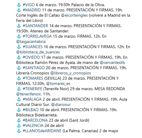 Comienza con este lanzamiento una gira promocional por todo el país, de la que os adelantamos ya los principales encuentros de las próximas semanas: