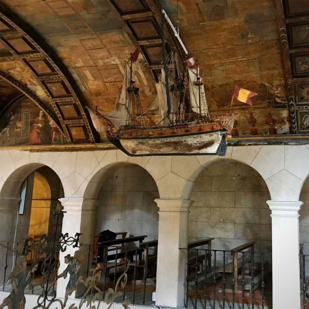 El que puede verse en la imagen cuelga desde 1702 del techo del Santuario de As Ermitas, en O Bolo, Ourense. Un marinero, Pedro Centeno, fue el 23 de septiembre desde Bayona a reconocer las naves de la Flota de Indias que llegaban, y a su regreso un vendaval lo arrojó al mar, donde permaneció tres horas hasta su rescate. El hombre ofreció el exvoto a Su Señora de las Ermitas, y allí permanece desde entonces.