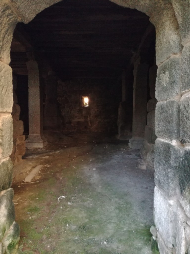 «Directamente, y a través de un grueso muro de piedra, accedimos al piso inferior de la sacristía. Ayudados con las linternas de los teléfonos móviles, iluminamos la estancia. Era magnífica. El techo de madera era, desde luego, el suelo que habíamos pisado hacía solo unos minutos, y por su estado ya teníamos claro que correspondía a la fecha de construcción, a mediados del siglo xvii.»Entrada al piso inferior, bajo la Sacristía de la Iglesia de Santo Estevo.